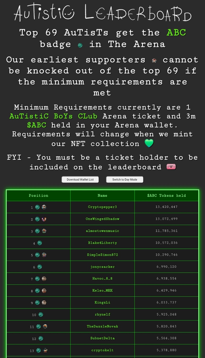 AuTistiC LeAdeRboArD is live: