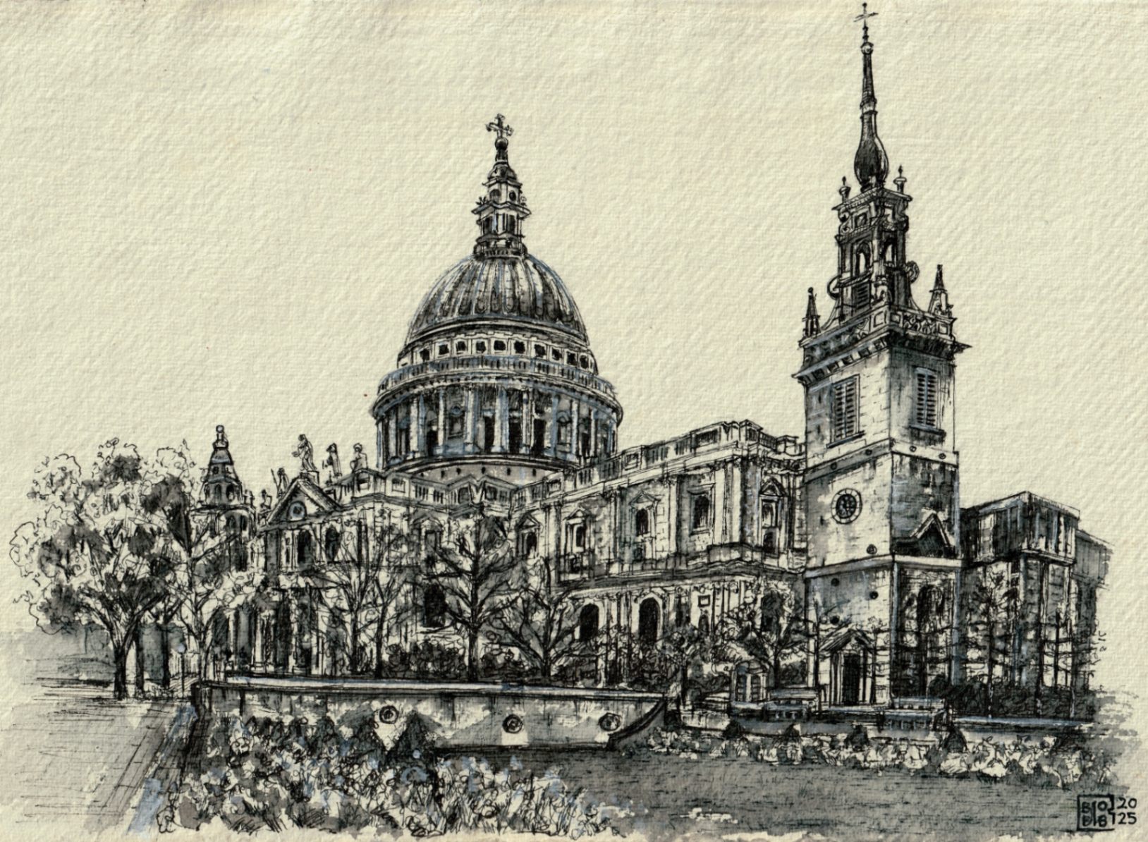Ink Drawing of St Paul's Cathedral, London