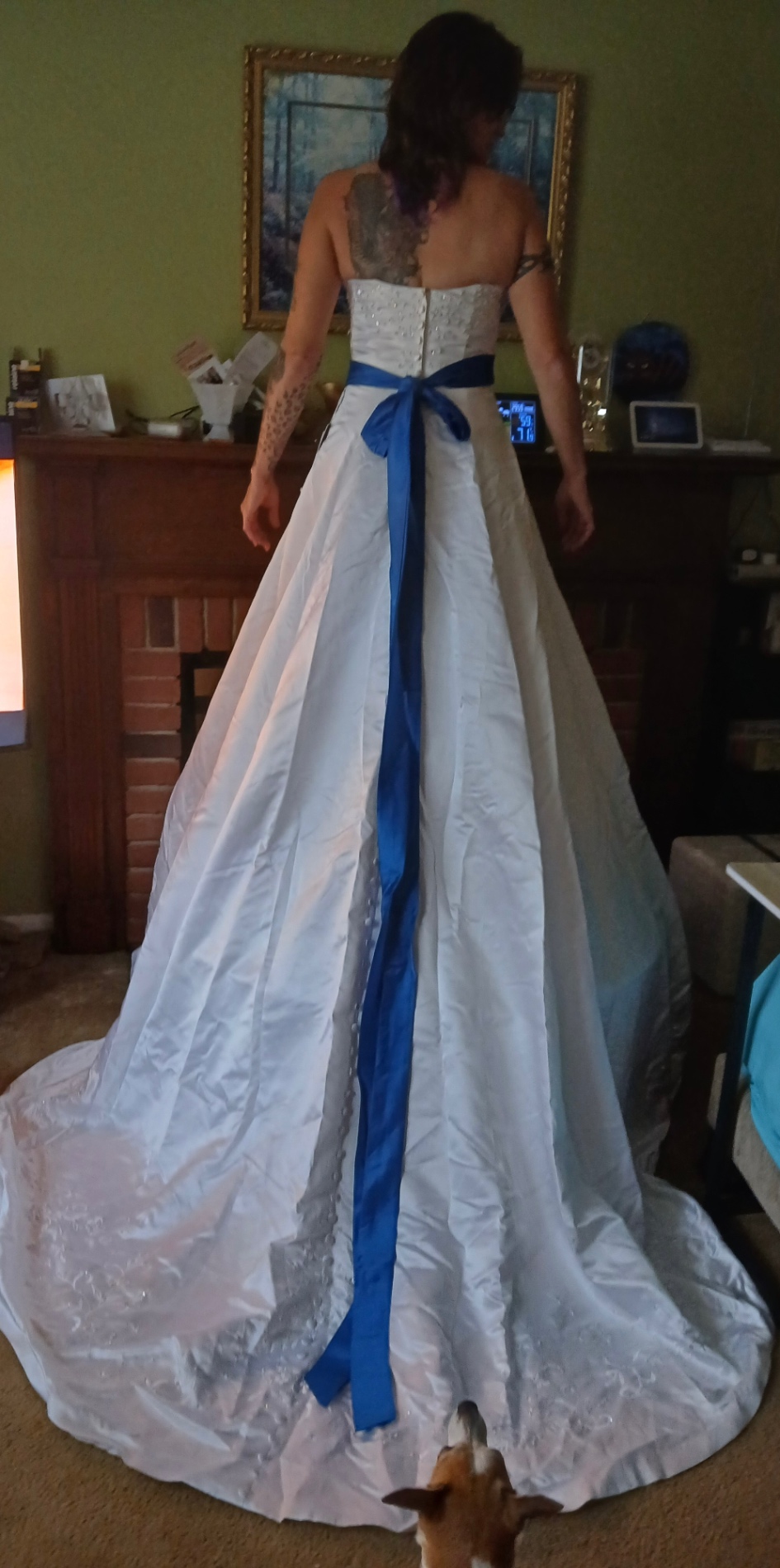 When you are going to give your never used wedding dress to you daughter, you try it on one final time.