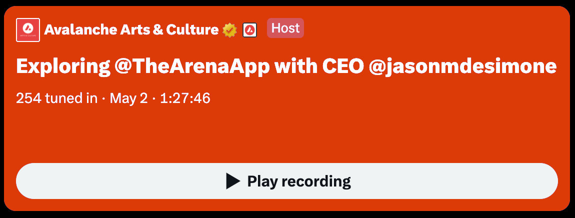 Will be a big deal for The Arena if its users decide to set up their own Avalanche L1. 🔺
