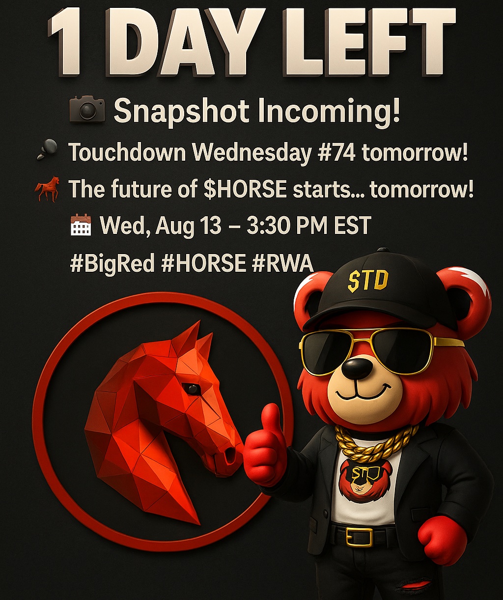 The official snapshot was taken the exact second this X post https://x.com/HorseRwa/status/1955706235119947822 went live.