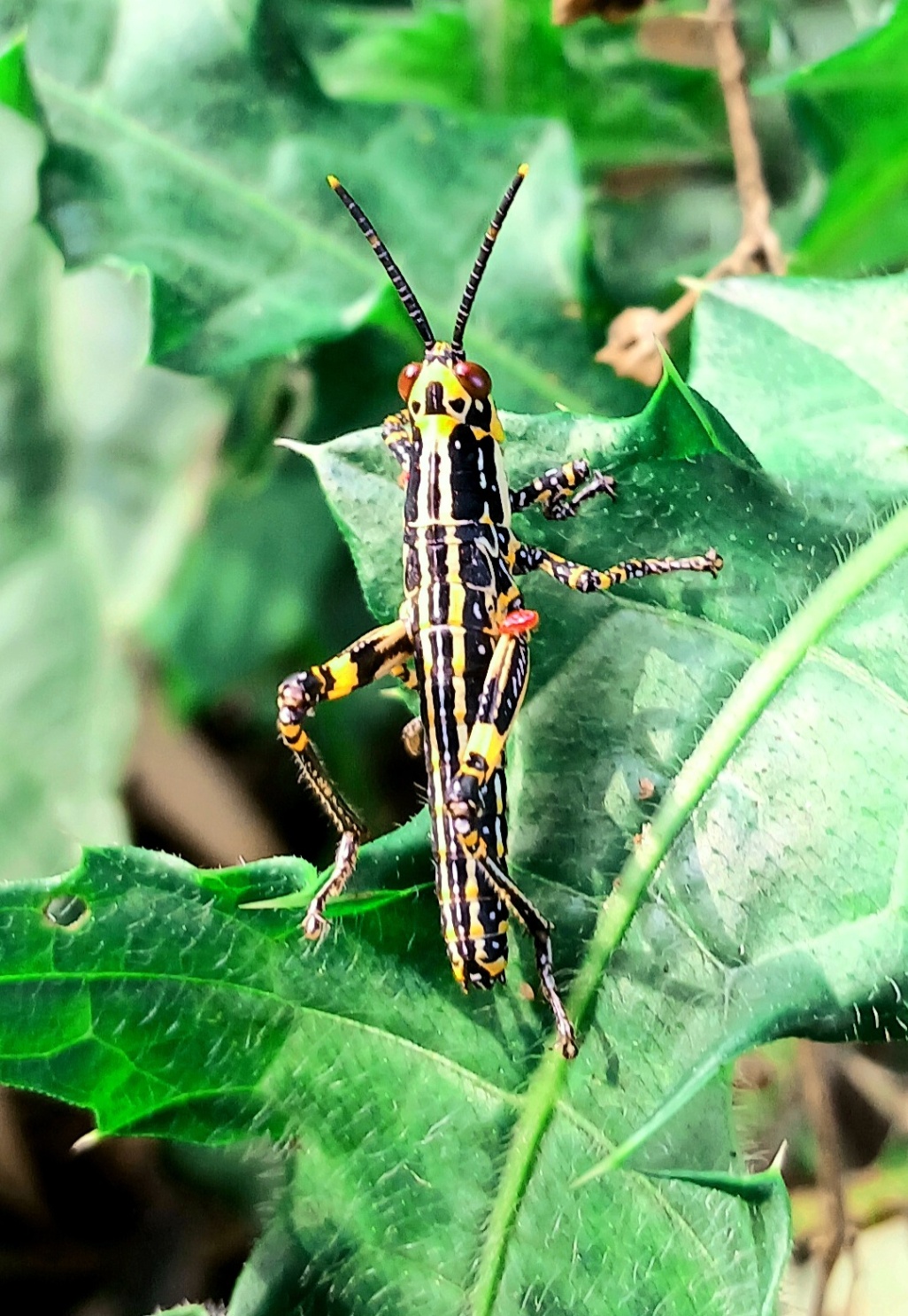 While expediting in the woods, i came across this colorful specie of grasshopper.