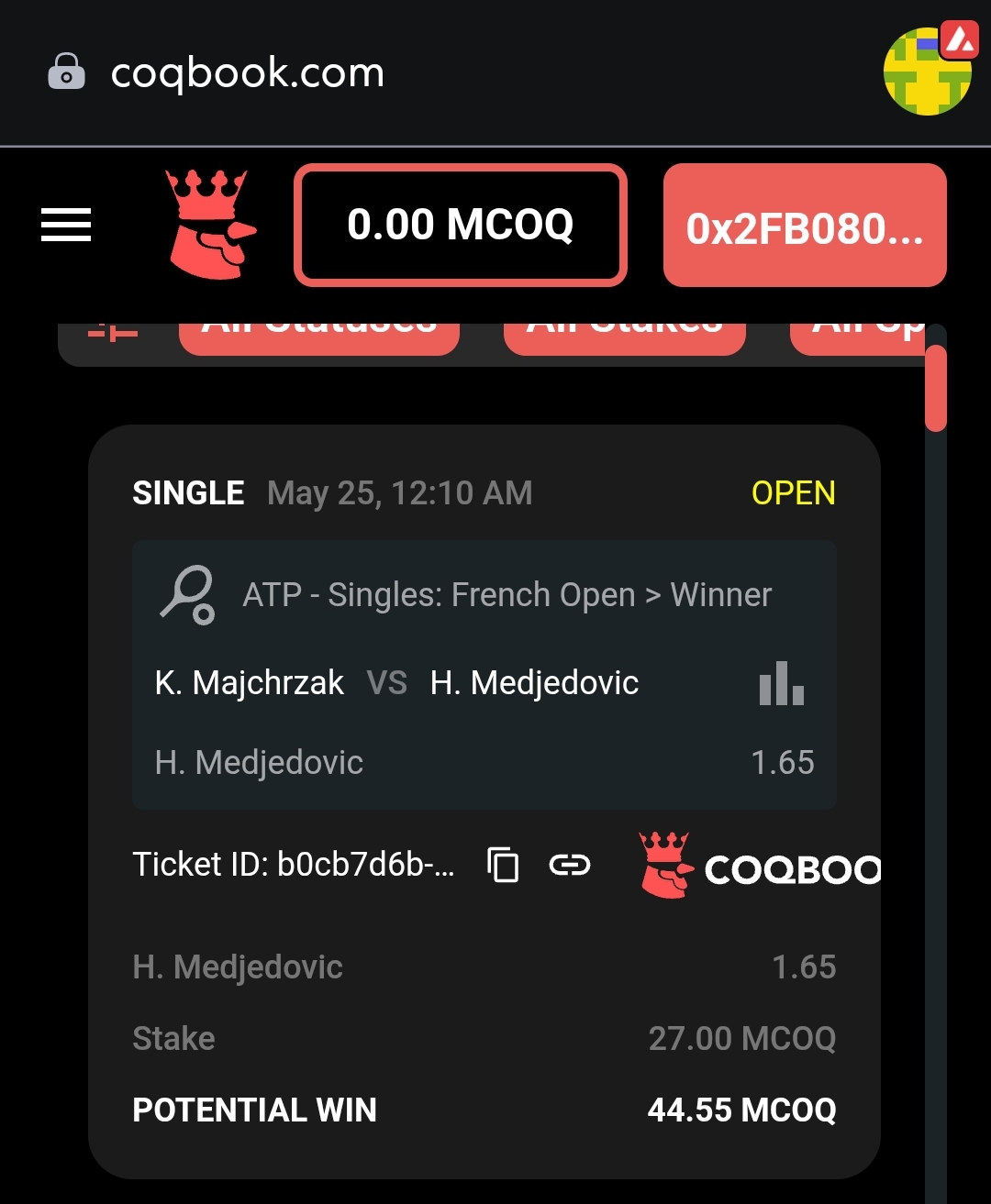 Even if you've never logged into COQBOOK & hold 0 $COQ, you can place your first bet in under a minute via these steps: