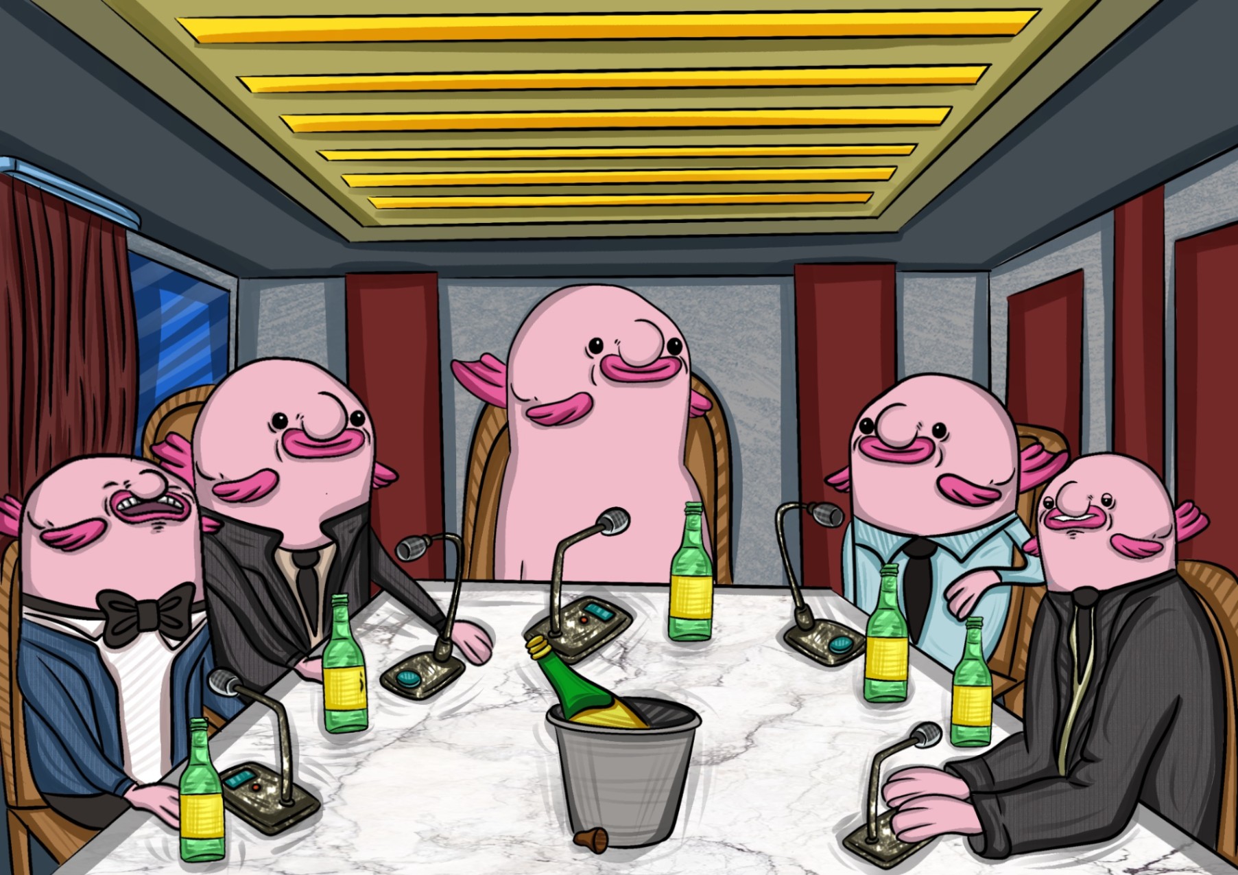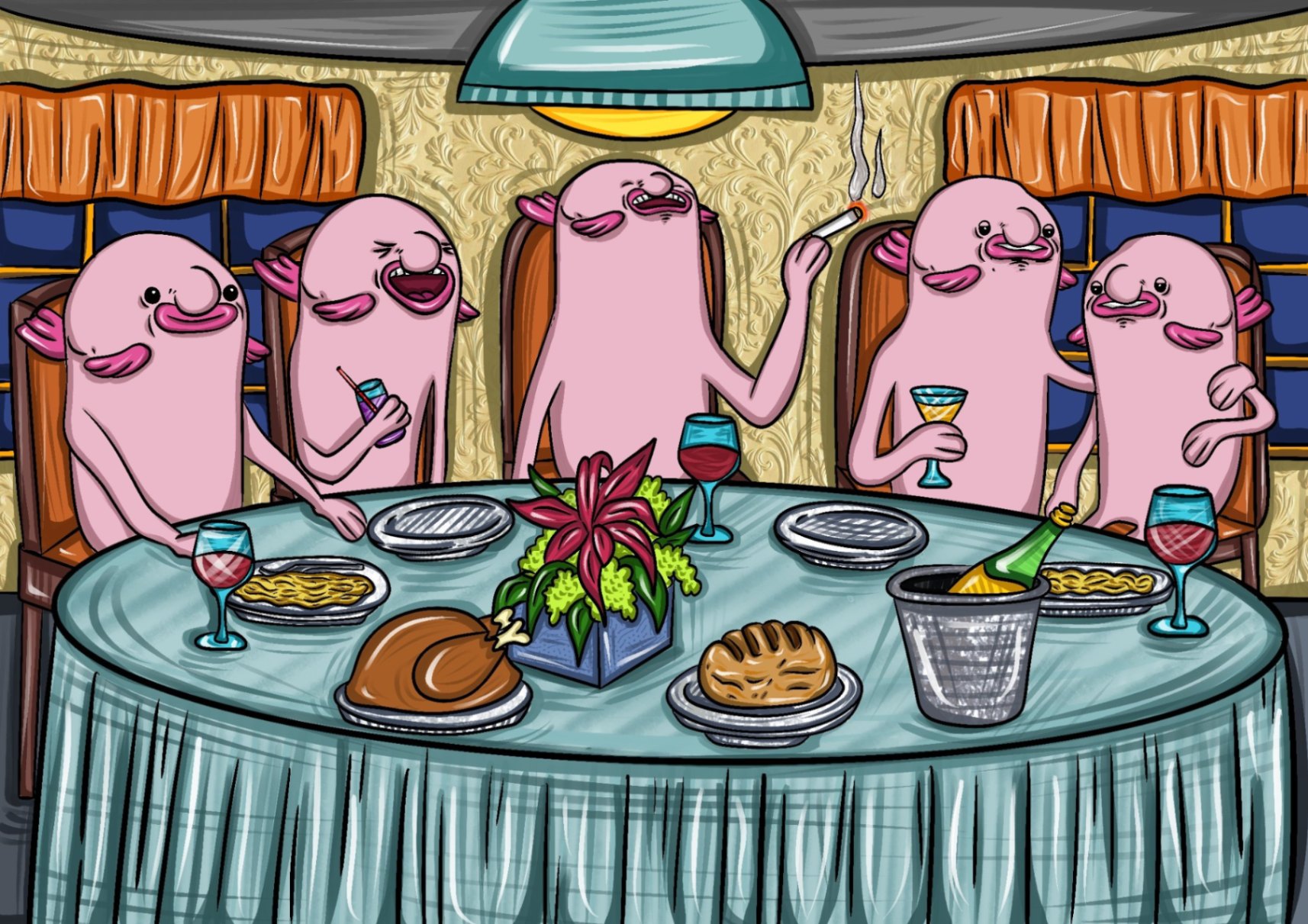 Those fortunate enough have secured their seats at the Blobland table, enjoying a post-travel celebration.