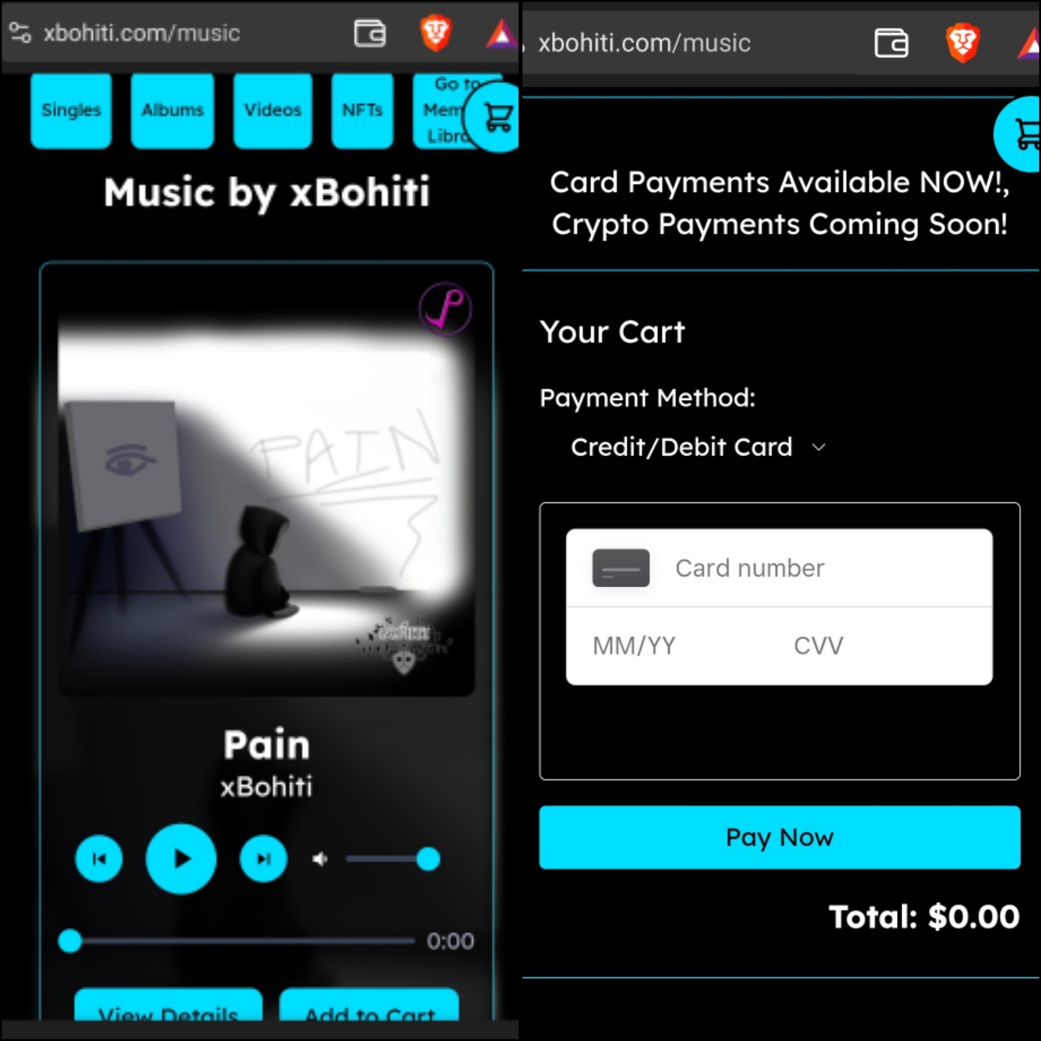 Credit/Debit Payments are now working for my Music page!! Crypto payments coming soon!